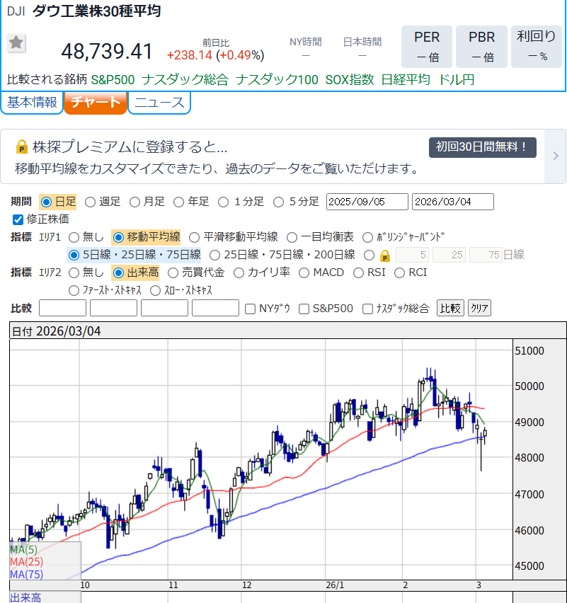 NYダウ+0.49%