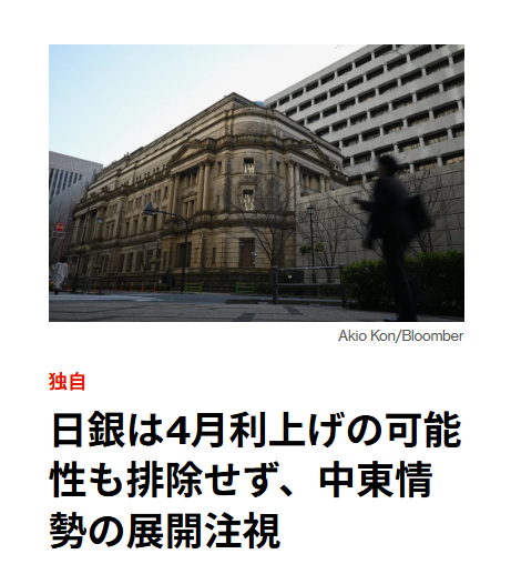 日銀は4月利上げの可能性を示唆