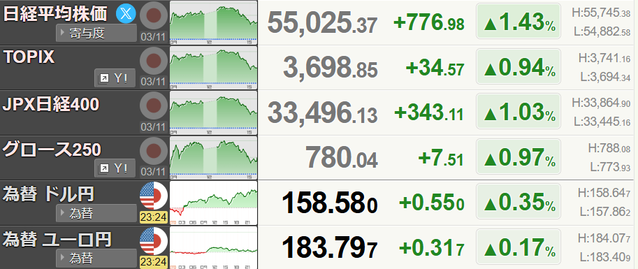 日経平均は反転上昇し、+1.43%